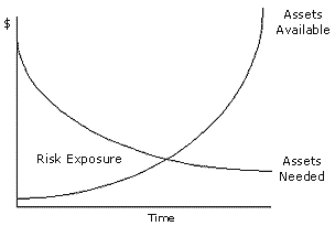 - The amount of your life insurance need typically decreases over time as your children approach age 22 and as your assets grow.